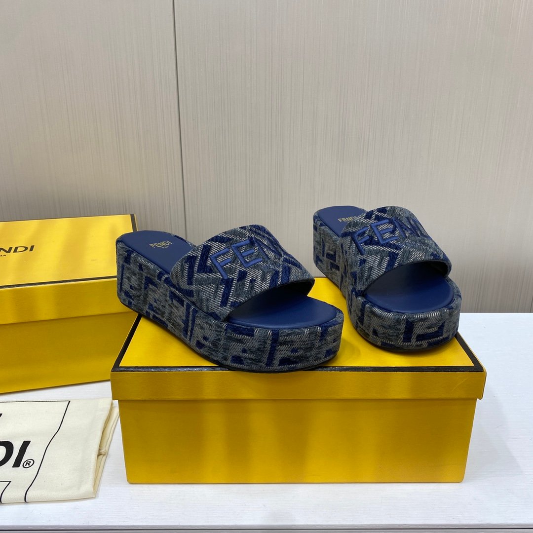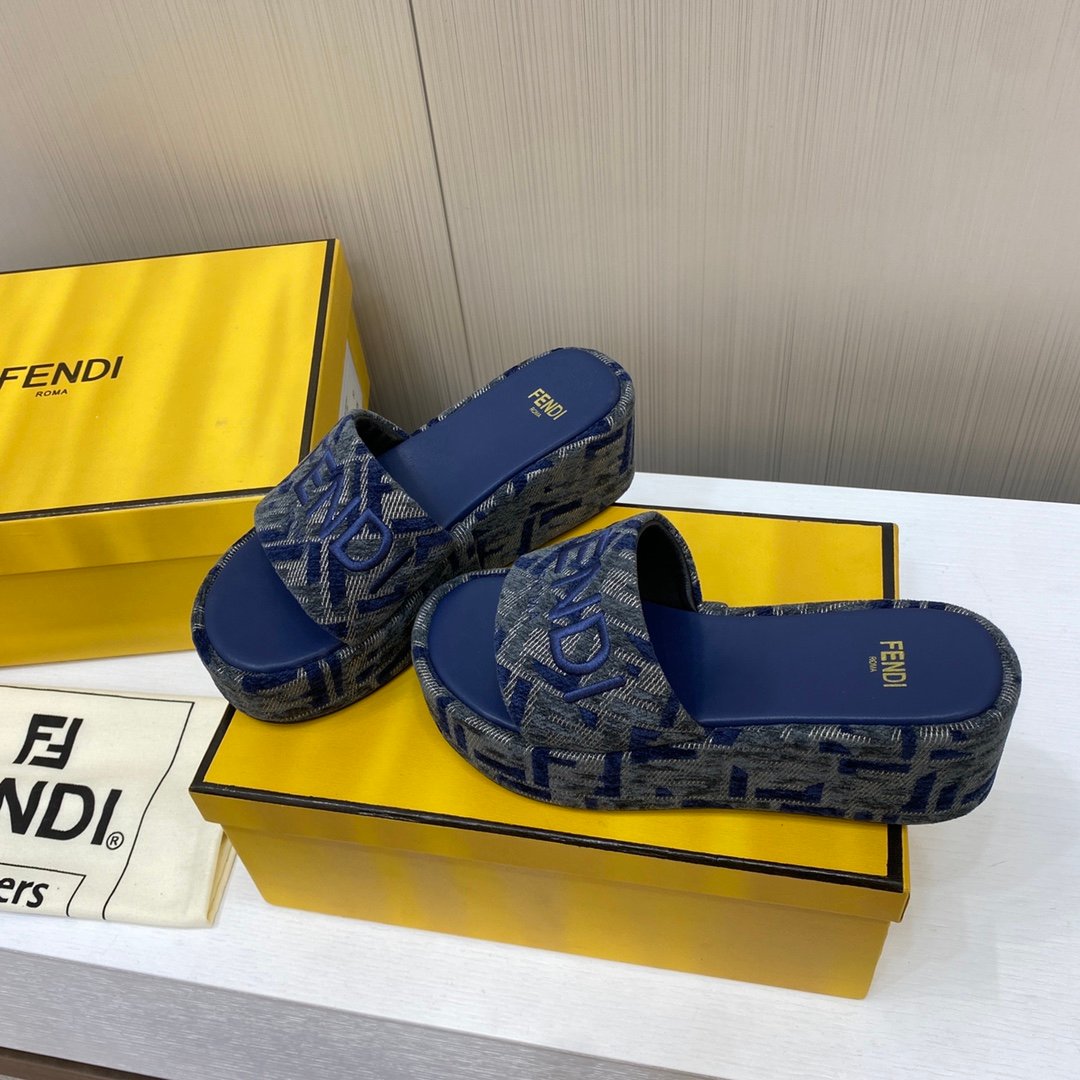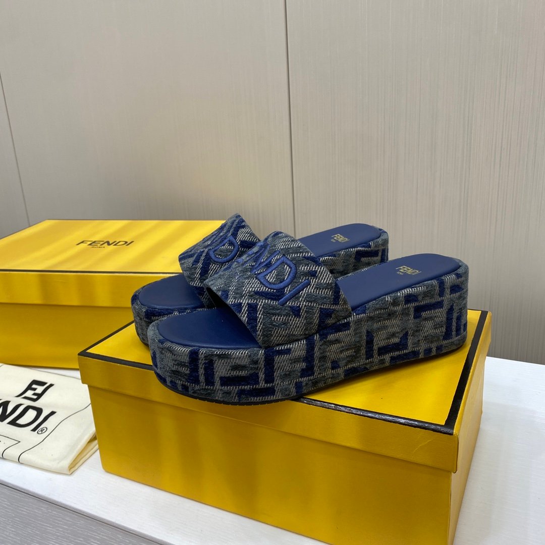 Fendi Sunshine FF Old Flower Slope Heel Thick Bottom Sandal Slippers