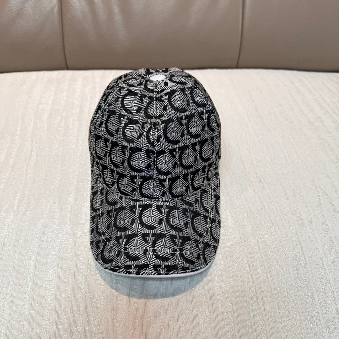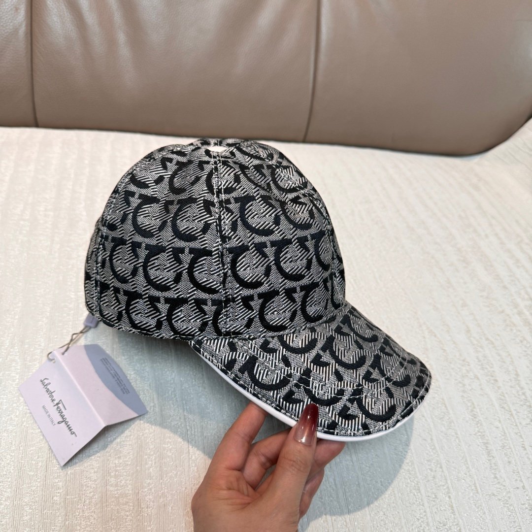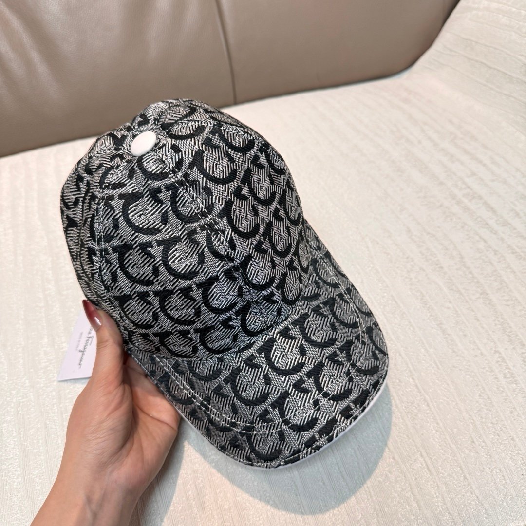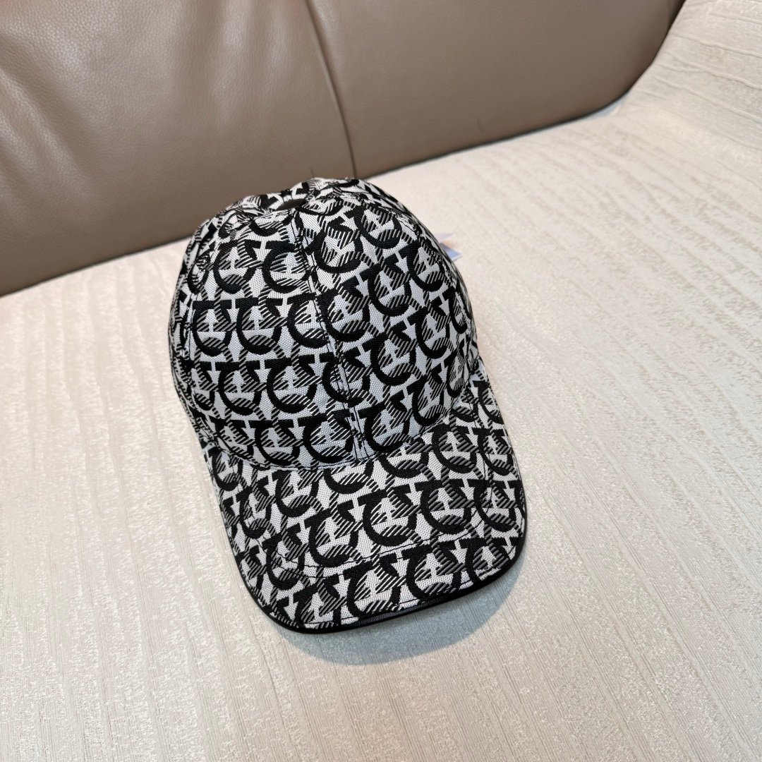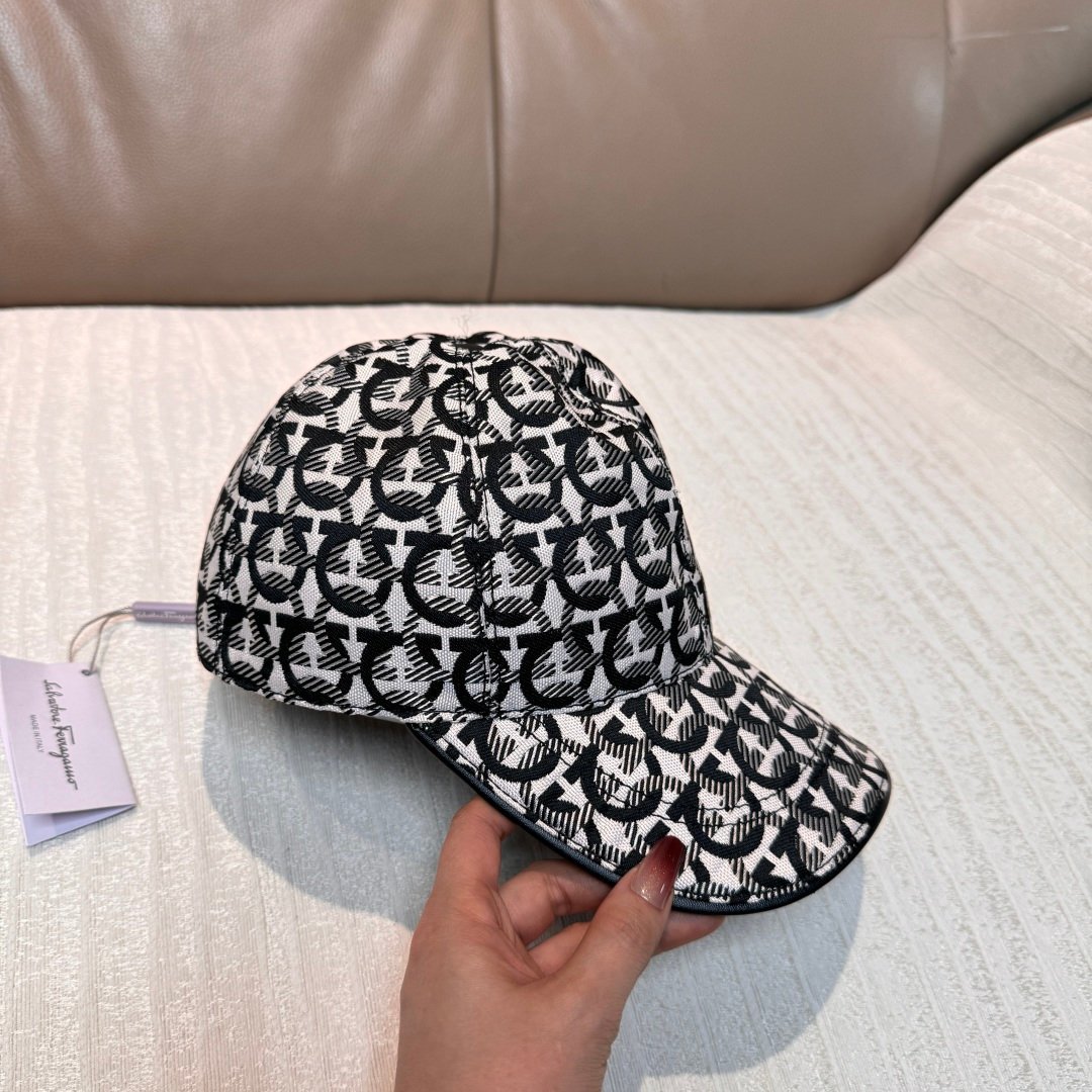 Ferragamo Baseball Cap – 1:1 Replica Jacquard Canvas & Full-Grain Leather