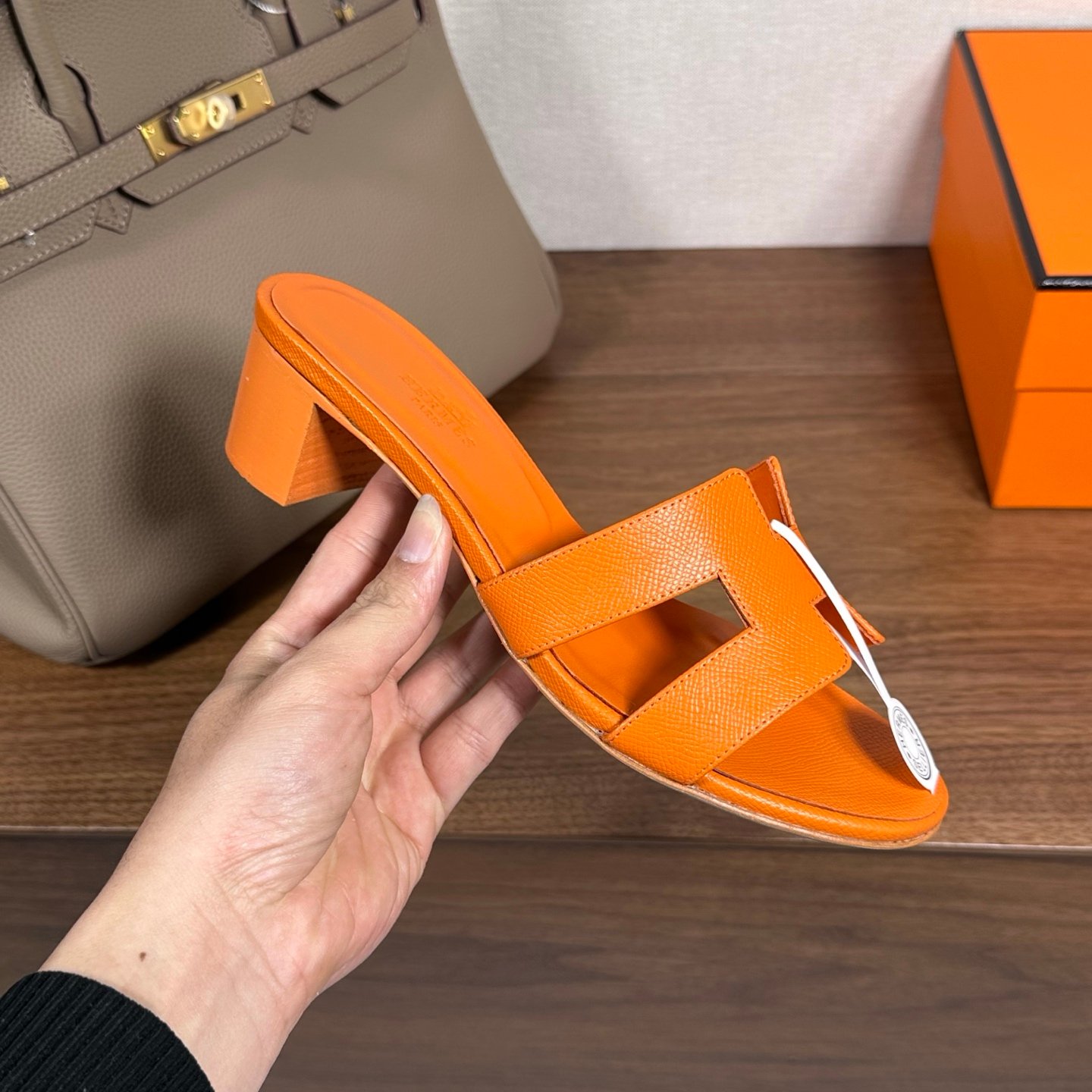 Hermes Oran H Square Heel High Heeled Sandals Slippers Shoes