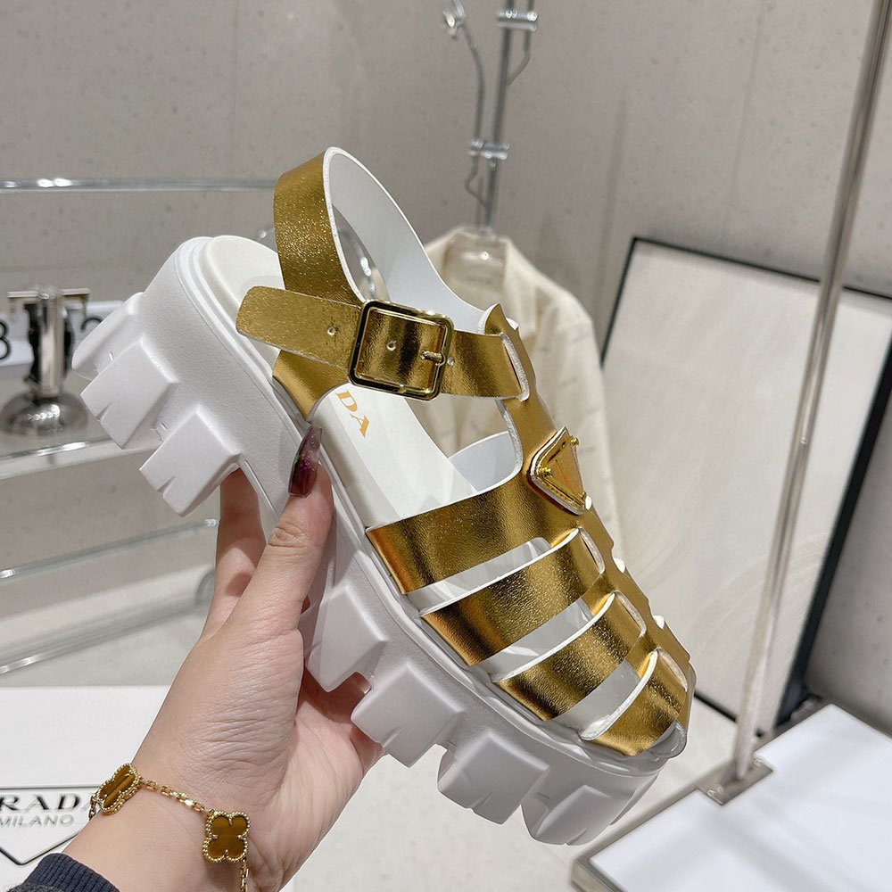 Prada Leather Round Head Buckle Sandals Slide